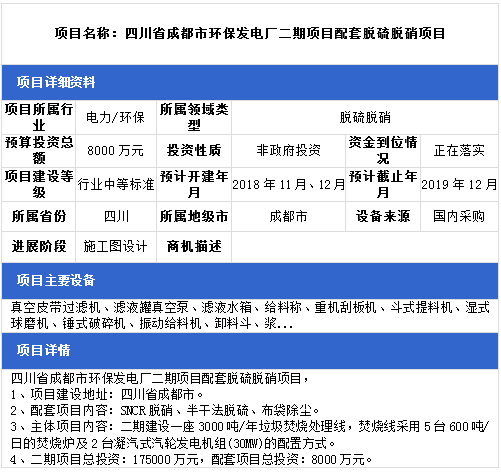 中項網(wǎng)獨家授權北極星環(huán)保網(wǎng)發(fā)布最新脫硫脫硝項目(2018年11月14日更新),涉及環(huán)保電廠配套脫硫脫硝項目、生物質發(fā)電配套脫硫脫硝項目、熱電聯(lián)產脫硫脫硝項目、垃圾焚燒發(fā)電廠脫硫脫硝項目等,具體項目信息如下: