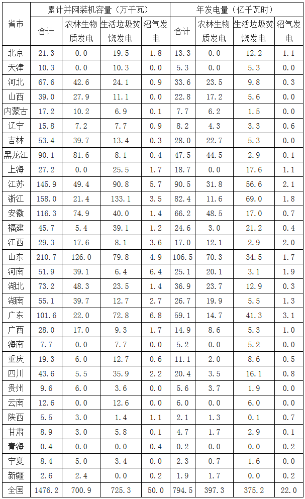 在各種政策的支持下,我國在生物質(zhì)能發(fā)電領(lǐng)域取得了重大進(jìn)展。截至2017年底,全國共有30個(gè)?。▍^(qū)、市)投產(chǎn)了747個(gè)生物質(zhì)發(fā)電項(xiàng)目,并網(wǎng)裝機(jī)容量1476.2萬千瓦(不含自備電廠),年發(fā)電量794.5億千瓦時(shí)。其中農(nóng)林生物質(zhì)發(fā)電項(xiàng)目271個(gè),累計(jì)并網(wǎng)裝機(jī)700.9萬千瓦,年發(fā)電量397.3億千瓦時(shí);生...