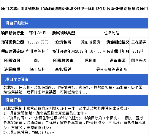 中項網(wǎng)獨家授權(quán)北極星固廢網(wǎng)發(fā)布最新垃圾處理項目(2018年11月5日更新),其中包括城鄉(xiāng)環(huán)衛(wèi)一體化項目、垃圾填埋場項目、垃圾焚燒發(fā)電項目等。具體內(nèi)容如下: