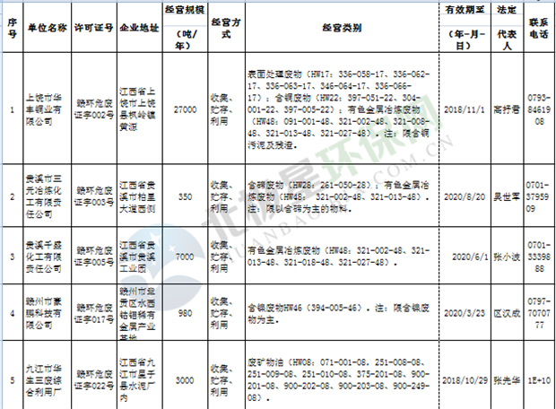 日前省環(huán)保廳發(fā)布了江西省《經(jīng)營(yíng)許可證》持證單位名單(省廳審批)2018年9月16日更新,具體內(nèi)容如下:延伸閱讀: