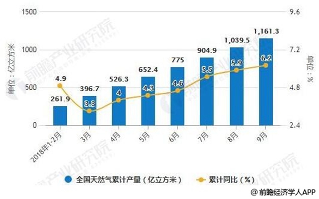 2018年1-9月全國天然氣產(chǎn)量統(tǒng)計及增長情況