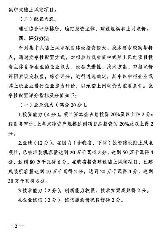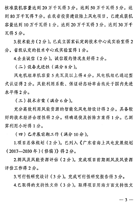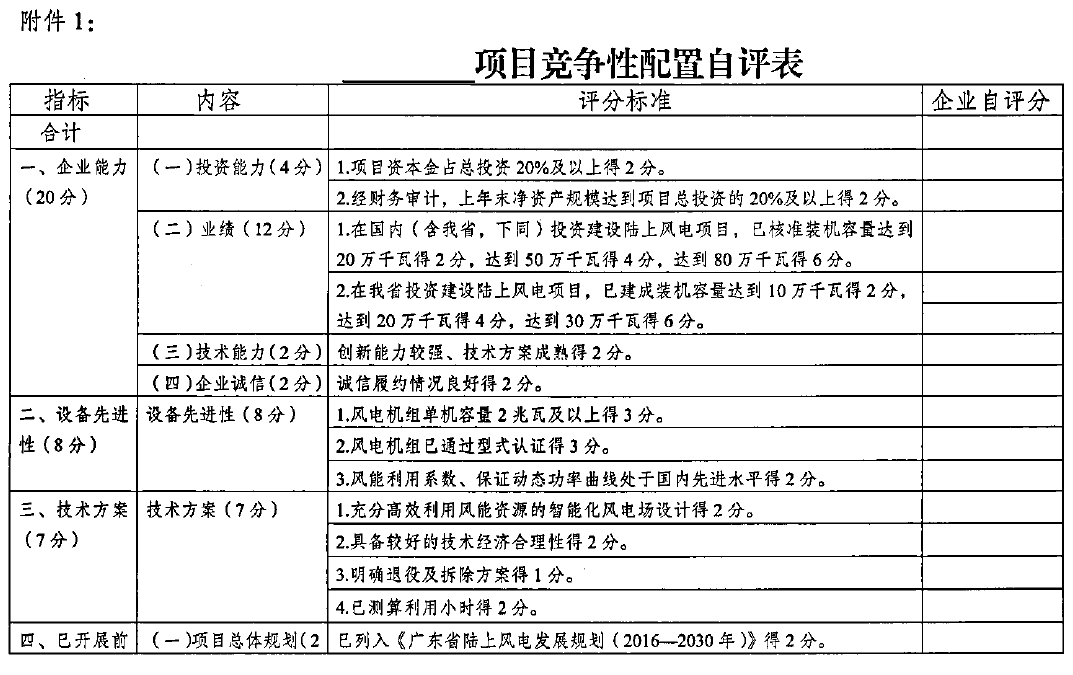 近日,廣東省能源局正式印發(fā)《海上風(fēng)電及陸上風(fēng)電競爭配置辦法(試行)》,該辦法為全國首份風(fēng)電“競價(jià)”細(xì)則標(biāo)準(zhǔn),對其他省份競價(jià)方案的落地起到了一定的借鑒和引導(dǎo)作用,辦法明確以企業(yè)能力、設(shè)備先進(jìn)性、技術(shù)方案、已開展前期工作、接入消納條件、申報(bào)電價(jià)七大要素為標(biāo)準(zhǔn)進(jìn)行“競價(jià)”。