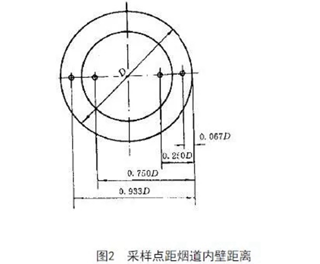 5.2.2 對圓形煙道,采樣孔應(yīng)設(shè)在包括各測點(diǎn)在內(nèi)的互相垂直的直徑線上。對矩形或方形煙道,采樣孔應(yīng)設(shè)在包括各測點(diǎn)在內(nèi)的延長線上。