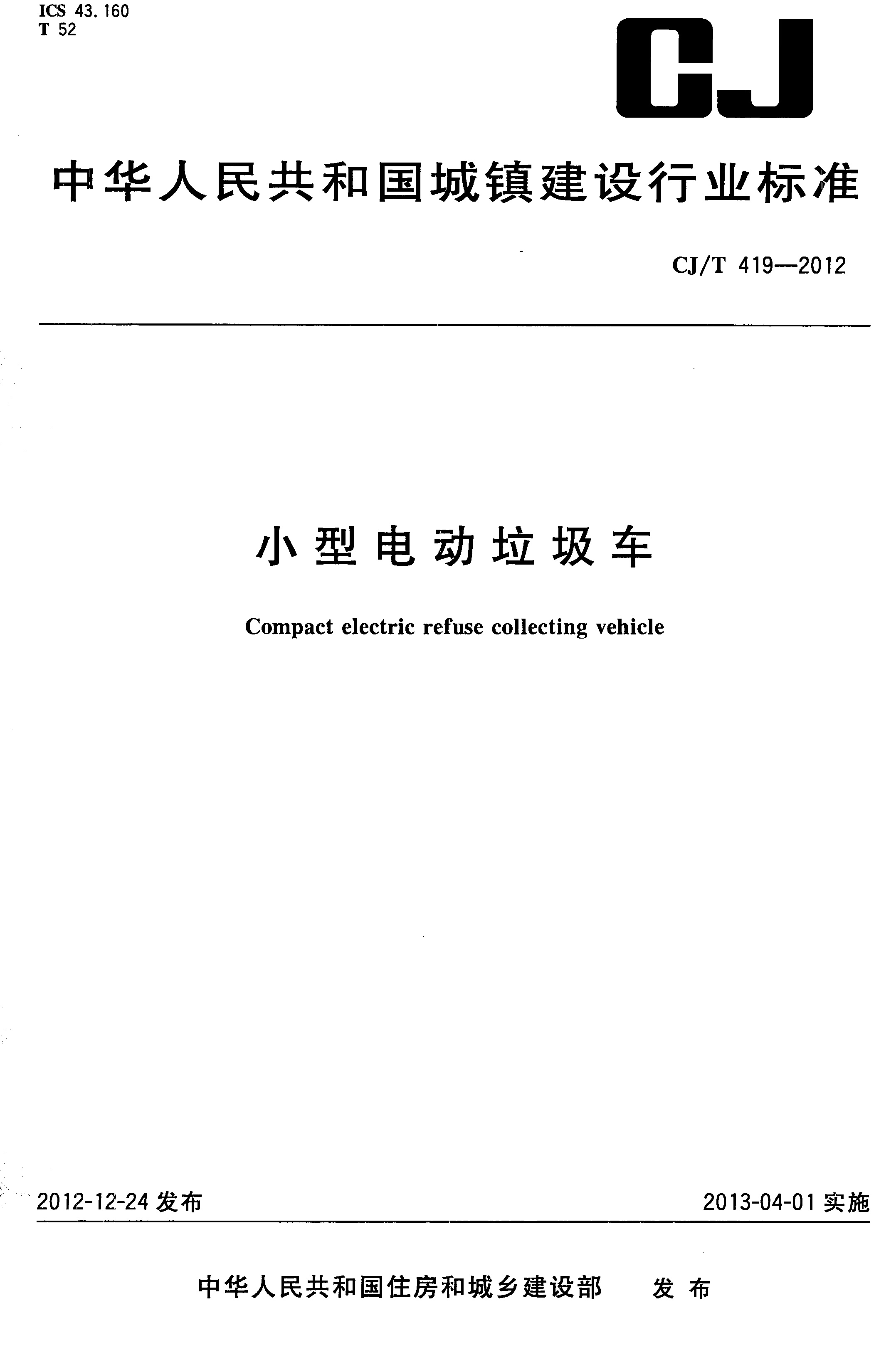 小型電動垃圾車(CJ/T 419-2012)