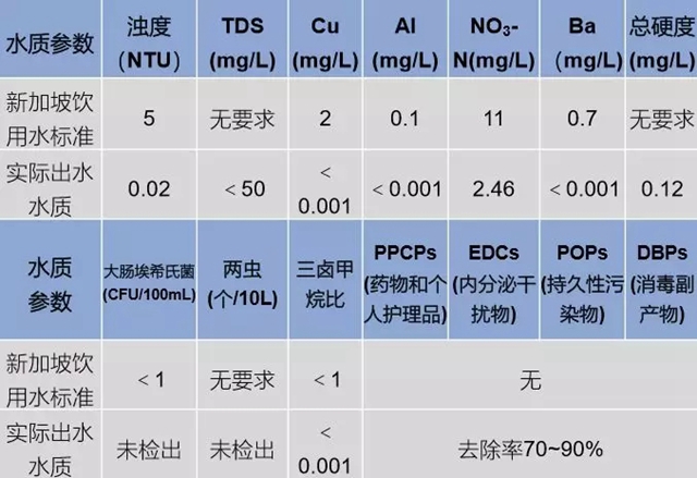 表2 樟宜Ⅱ新生水廠出水水質(zhì)情況