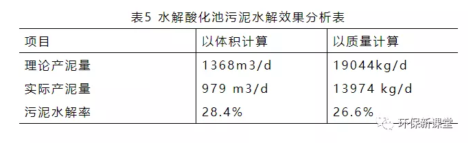 (4) 水解酸化池在截留大量懸浮物和去除部分BOD5的同時,對污泥還有一定的水解率[5],通過某水務(wù)某污水處理廠長時間的運行發(fā)現(xiàn),水解酸化池理論產(chǎn)泥量在19044kg/d,而實際處理泥量在13974kg/d,根據(jù)計算污泥水解率約在26.6%;以體積計算,污泥水解率在28.4%,減輕了脫水機(jī)的運行負(fù)荷,同時降低了運行費用,由此可以看出水解酸化池57.62%的COD去除率,其中一部分通過剩余污泥進(jìn)行排放,其他可能通過硫酸鹽還原、氫氣的產(chǎn)生等途徑降解。