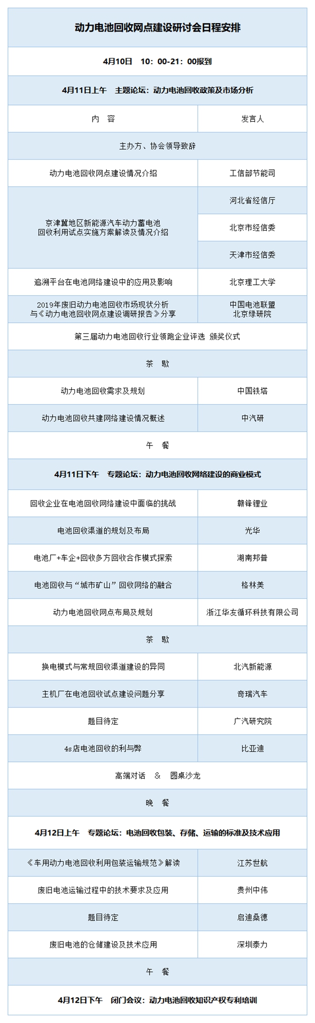 為了更好的幫助回收企業(yè)解決網(wǎng)點規(guī)劃布局、渠道建設和相應的技術人員等問題,中國電池聯(lián)盟、中國鐵塔、中國電子節(jié)能技術協(xié)會電池專委會、北京理工大學、清華大學聯(lián)合主辦的動力電池回收網(wǎng)點建設研討會將于2019年4月10-12日在京召開。