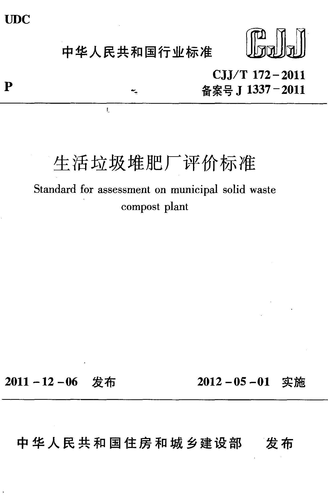 生活垃圾堆肥廠評(píng)價(jià)標(biāo)準(zhǔn)(CJJ/T 172-2011)
