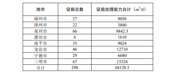 福建農(nóng)村污水處理設(shè)施統(tǒng)計情況