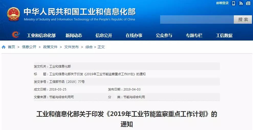 2019年工業(yè)節(jié)能監(jiān)察重點工作計劃