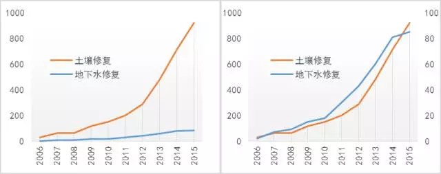 圖:土壤修復與地下水修復專利申請對比