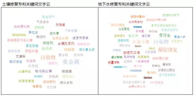 圖: 土壤及地下水修復專利申請關(guān)鍵詞文字云比較