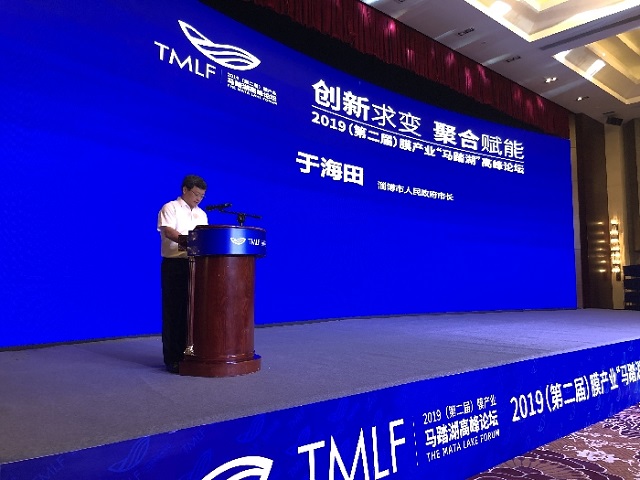 8月18日上午,在桓臺縣人民政府縣長邊江風(fēng)主持下,2019(第二屆)膜產(chǎn)業(yè)“馬踏湖”高峰論壇在熱烈的氣氛中正式開幕,淄博市市長于海田、中國石油和化學(xué)工業(yè)聯(lián)合會副會長傅向升、中國工業(yè)經(jīng)濟(jì)聯(lián)合會執(zhí)行副會長熊夢、中國膜工業(yè)協(xié)會秘書長王繼文、中共桓臺縣委書記賈剛分別為論壇會致辭。