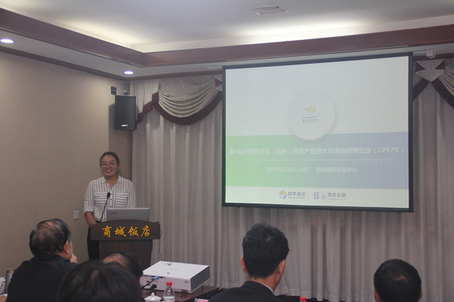“ 2019第四屆中原經(jīng)濟(jì)區(qū)(鄭州)環(huán)保產(chǎn)業(yè)暨水環(huán)境治理博覽會“(簡稱:中原環(huán)保展)組委會代表徐培華經(jīng)理,匯報了工作進(jìn)展情況。