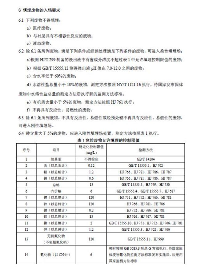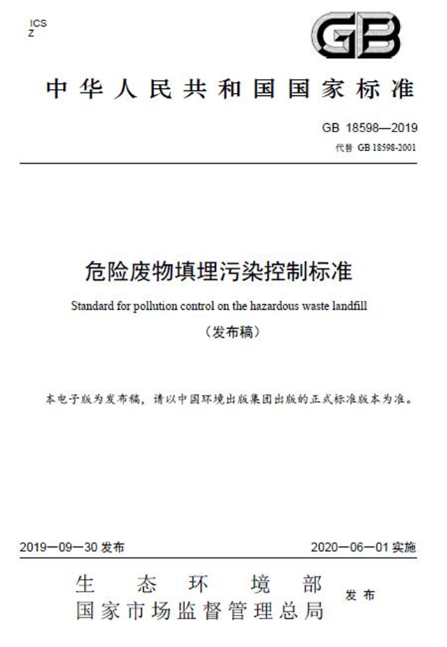 該標(biāo)準(zhǔn)自2020年6月1日起實施,自實施之日起,《危險廢物填埋污染控制標(biāo)準(zhǔn)》(GB18598-2001)同時廢止。