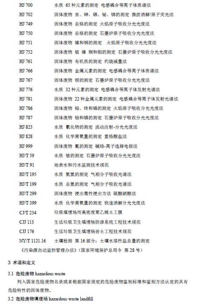 危險廢物填埋污染控制標(biāo)準(zhǔn)(GB 18598-2019)。