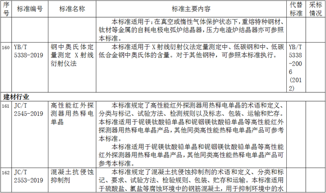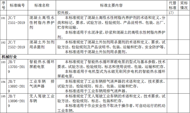 根據(jù)行業(yè)標準制修訂計劃,相關標準化技術組織已完成《阻燃化學品 聚磷酸三聚氰胺》等150項化工行業(yè)標準、《工業(yè)用碳九芳烴》等5項石化行業(yè)標準、《真空自耗爐結晶器》等5項冶金行業(yè)標準、《高性能紅外探測器用熱釋電單晶》等22項建材行業(yè)標準、《智能熱水循環(huán)屏蔽電泵》等39項機械行業(yè)標準、《多旋翼無人機系統(tǒng)通用要求》等2項航空行業(yè)標準的制修訂工作。在以上標準批準發(fā)布之前,為進一步聽取社會各界意見,現(xiàn)予以公示,截止日期2019年11月12日。