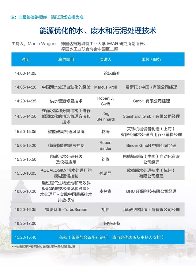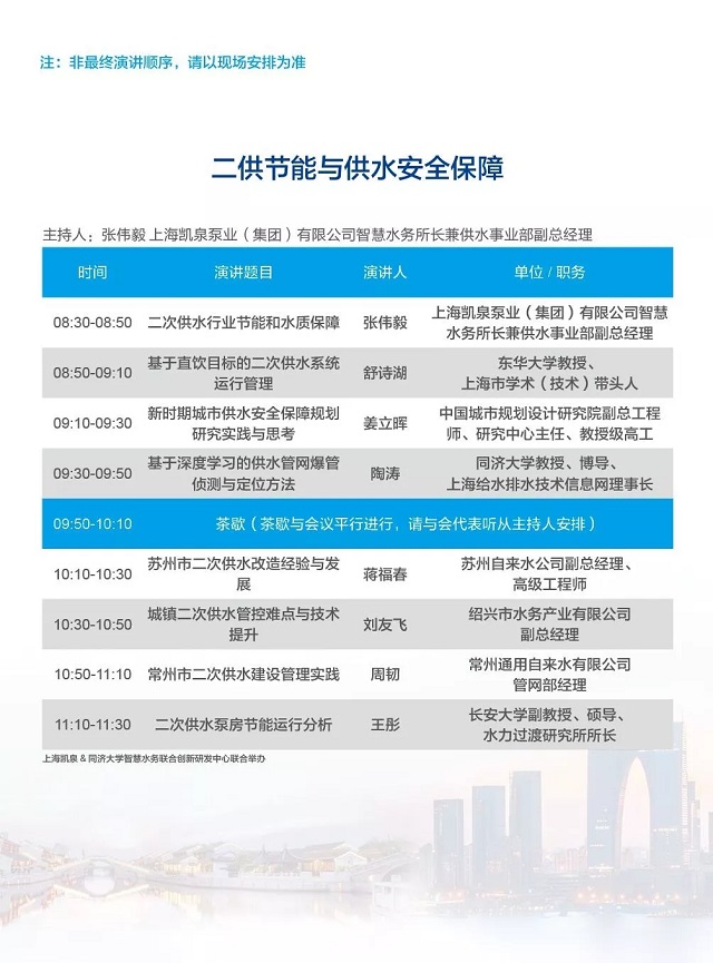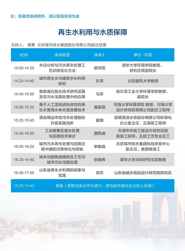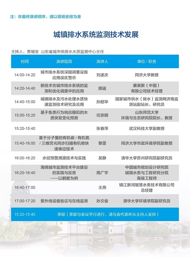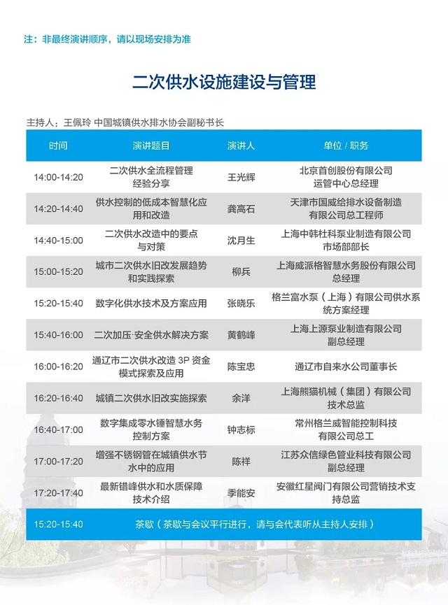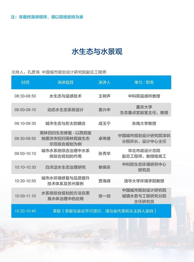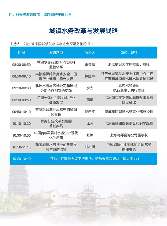 除以上分論壇外,蘇州論壇——高品質(zhì)水公共產(chǎn)品研討會(huì)、建筑節(jié)水論壇、城鎮(zhèn)水環(huán)境綜合整治與管理、中-法水務(wù)科技論壇等論壇議程正在確認(rèn)中……敬請(qǐng)期待!