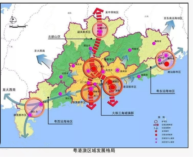 粵港澳大灣區(qū)由香港、澳門兩個(gè)特別行政區(qū)和廣東省廣州、深圳、珠海、佛山、惠州、東莞、中山、江門、肇慶(珠三角)九個(gè)地市組成,總面積5.6萬平方公里,2018年末總?cè)丝谝堰_(dá)7000萬、GDP10.867萬億元人民幣,以全國0.6%的面積貢獻(xiàn)了12.4%的GDP,是中國經(jīng)濟(jì)實(shí)力最雄厚也是最具創(chuàng)新力、發(fā)展活力的區(qū)域,在國家整體發(fā)展戰(zhàn)略中具有舉足輕重的地位。