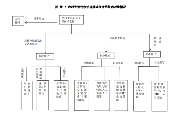 日前公布的《河北省農(nóng)村生活污水治理技術(shù)導(dǎo)則(試行)》明確要求,根據(jù)農(nóng)村的地理位置、居民集中程度、地形地貌狀況不同,選擇適宜模式對農(nóng)村污水 進行治理。條件允許或?qū)ξ鬯欧庞袊栏褚蟮牡貐^(qū),宜采用建設(shè)污水治 理設(shè)施的方式確保達標(biāo)排放;其他地方要充分結(jié)合農(nóng)村改廁,借助地理自然條件、環(huán)境消納能力等進行有效管控。具體參考下圖: