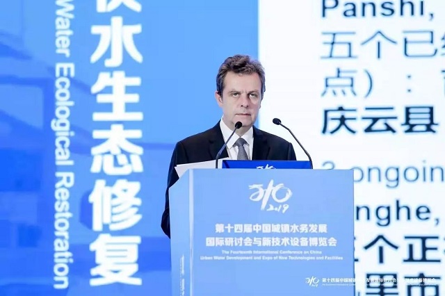 Etienne Crépon在主論壇上發(fā)表演講《中法生態(tài)城市項目中水資源的可持續(xù)和自然管理》。在演講中,他介紹到法國建筑科學技術(shù)中心是法國國家公立機構(gòu),其任務是向建造業(yè)和城市規(guī)劃的利益相關(guān)者提供專業(yè)知識,以支持項目的創(chuàng)新、質(zhì)量和安全。他表示,CSTB與中國部分城市已經(jīng)進行了很多深入的合作,在凱里、榆中和天津?qū)幒拥闹蟹ㄉ鷳B(tài)城中,結(jié)合地方區(qū)域性特點,CSTB為生態(tài)城建設(shè)制定了優(yōu)秀的水管理相關(guān)系統(tǒng)設(shè)計和解決方案。