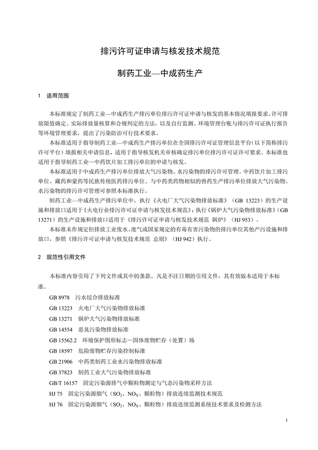 排污許可證申請(qǐng)與核發(fā)技術(shù)規(guī)范 制藥工業(yè)—中成藥生產(chǎn)
