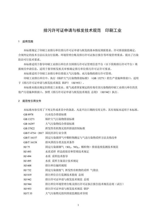排污許可證申請與核發(fā)技術(shù)規(guī)范 印刷工業(yè)
