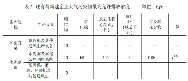 水泥工業(yè)大氣污染物排放標(biāo)準(zhǔn)