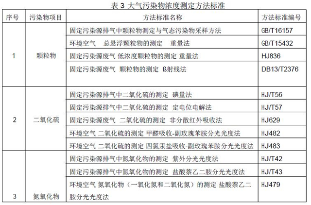 5.5 對(duì)大氣污染物排放濃度的測(cè)定采用表3 所列的方法標(biāo)準(zhǔn)。