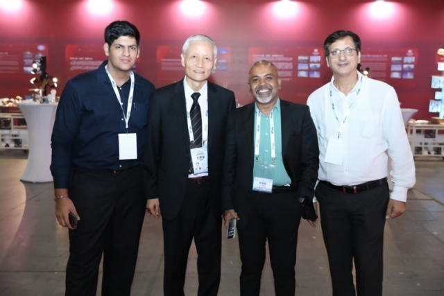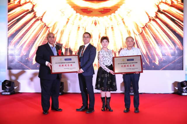印度氣體協(xié)會TIKU 會長和浙江氣協(xié)張耀輝秘書長為杭州福斯達陳吉華經(jīng)理及蘇州興魯薛魯董事長頒獎