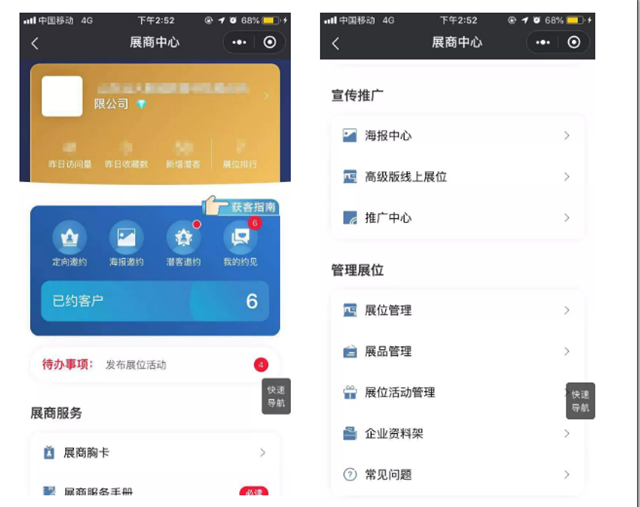 展商在展前可以通過線上展會(huì)的潛客邀約、定向邀約、海報(bào)邀約三大利器,向新老客戶發(fā)送邀約,同時(shí)可以在線響應(yīng)觀眾約見請求,合理安排現(xiàn)場接待人員及會(huì)談時(shí)間,提高展會(huì)現(xiàn)場會(huì)談效率,增加商機(jī)轉(zhuǎn)化;