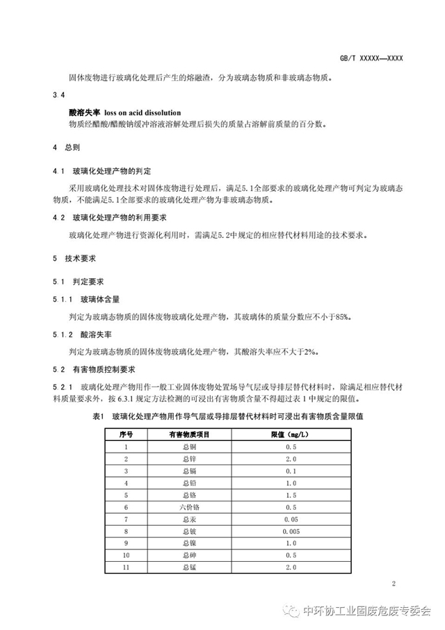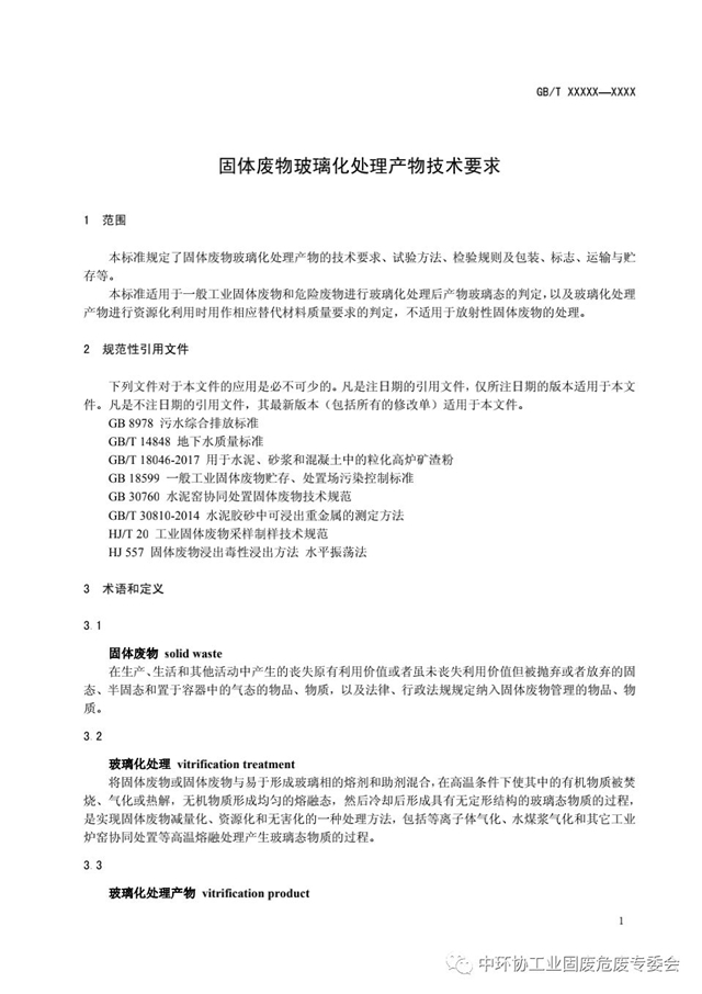 日前全國(guó)產(chǎn)品回收利用基礎(chǔ)與管理標(biāo)準(zhǔn)化技術(shù)委員會(huì)發(fā)布了《固體廢物玻璃化處理產(chǎn)物技術(shù)要求(征求意見稿)》,具體內(nèi)容如下: