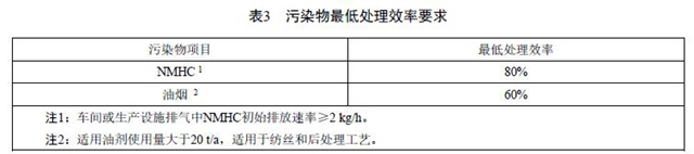 4.1.5 NMHC和油煙的最低處理效率應(yīng)滿足表3規(guī)定的最低處理效率,并應(yīng)同時執(zhí)行表1或表4規(guī)定的排放濃度限值。