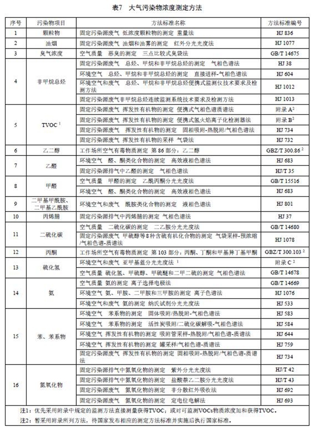 6.2.4 大氣污染物的分析測定采用表7中所列的方法標(biāo)準(zhǔn)。