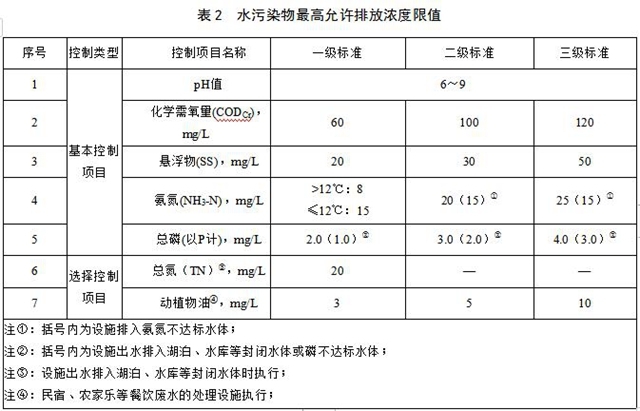 經(jīng)處理后向環(huán)境直接排放的污水出水水質(zhì),其中各污染物最高允許排放濃度應(yīng)符合表2的規(guī)定。