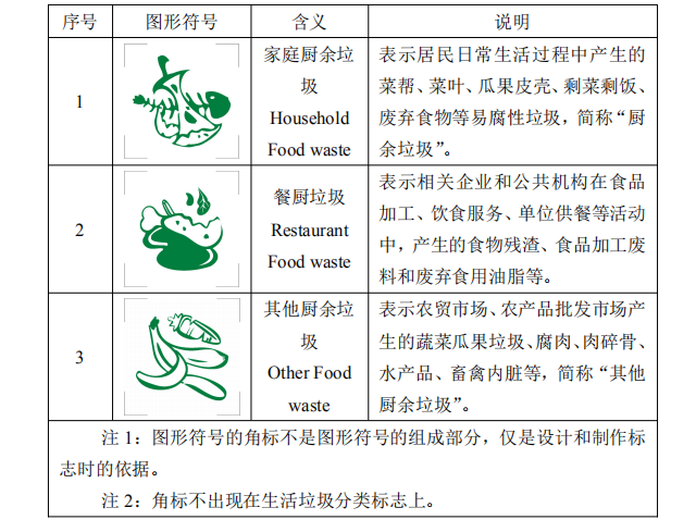 表 5 廚余垃圾中小類標志用圖形符號
