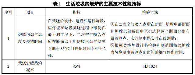 (1)爐膛內(nèi)煙氣溫度及停留時(shí)間、焚燒爐渣熱灼減率應(yīng)滿足表1的要求。