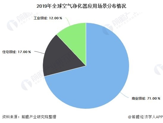根據應用場景不同,空氣凈化器市場分為商業(yè),住宅和工業(yè)。由于辦公空間和教育機構的需求增加,商業(yè)應用細分市場在2019年占據了71.0%的主導市場份額。