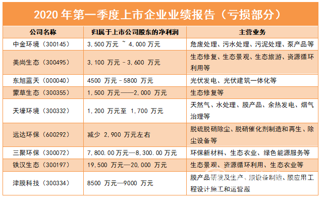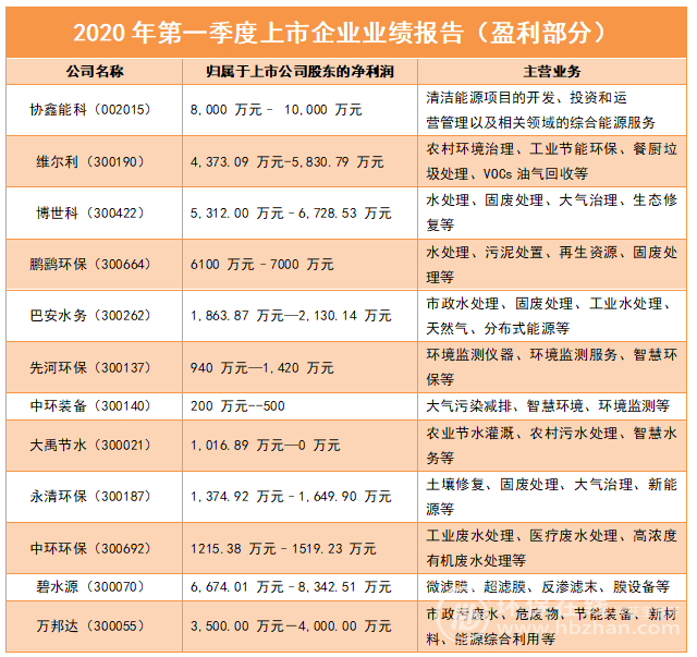日前,多個(gè)環(huán)保企業(yè)發(fā)布了2020年第一季度(2020年1月1日-3月31日)的業(yè)績(jī)報(bào)告或預(yù)告。受疫情影響,很多工程項(xiàng)目等開工延遲、訂單減少,從而影響了很多環(huán)保企業(yè)的業(yè)績(jī)。但仍有很多企業(yè)實(shí)現(xiàn)了盈利,具體有哪些企業(yè)呢?