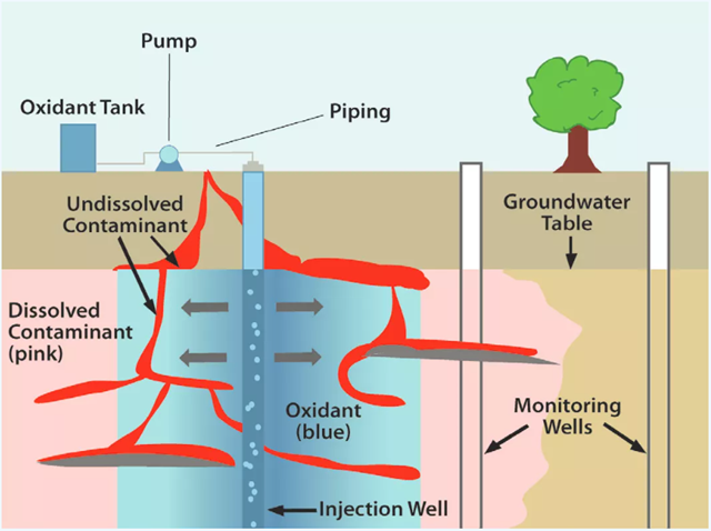 氧化劑的反應(yīng)性和污染物的可處理性取決于污染物的性質(zhì)、混合污染物的存在以及特定的水文地質(zhì)條件。一般來(lái)說(shuō),所有的石油碳?xì)浠衔锖痛蠖鄶?shù)氯化溶劑都可以用ISCO處理,盡管其效果因化合物而異。乙烯可被所有氧化劑的處理,這取決于特定場(chǎng)地的情況。更難對(duì)付的污染物,如氯化乙烷,需要更具有烈性的自由基基氧化劑,如催化過(guò)氧化氫、活化過(guò)硫酸鹽或臭氧。影響污染物可處理性的其他因素是場(chǎng)地特異性,包括pH值、堿度、場(chǎng)地土壤有機(jī)碳含量和污染物濃度。一般來(lái)說(shuō),高污染物濃度和高土壤有機(jī)碳含量的場(chǎng)地對(duì)任何氧化劑都是挑戰(zhàn),而pH和堿度對(duì)氧化劑的影響則不同。有詳細(xì)的指南和決定矩陣來(lái)選擇合適的氧化劑來(lái)處理相應(yīng)場(chǎng)地條件的污染物。