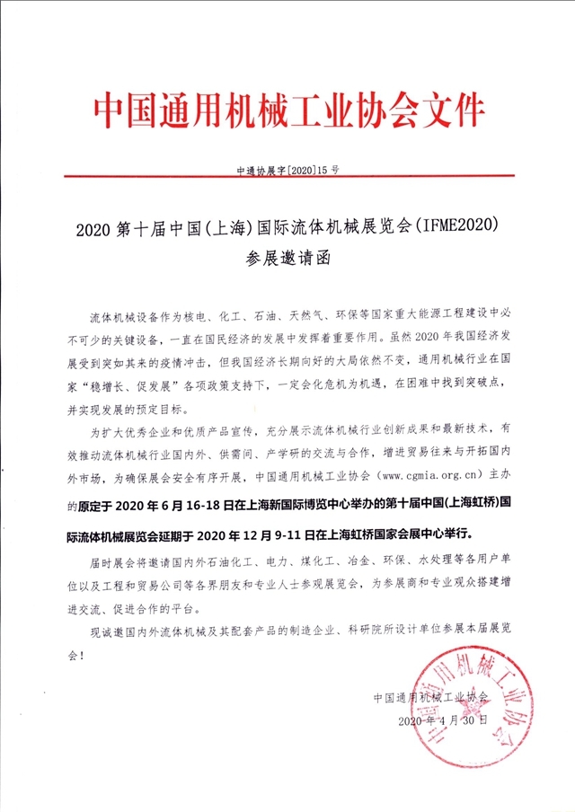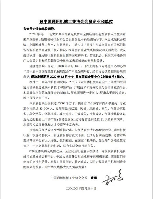 一場(chǎng)突如其來(lái)的疫情打亂了整個(gè)行業(yè)的節(jié)奏,作為年度流體機(jī)械行業(yè)國(guó)際性盛會(huì),為確保海內(nèi)外展商的參展效果,保障廣大展商和觀眾的安全和健康,第十屆中國(guó)(上海)國(guó)際流體機(jī)械展覽會(huì)(IFME)主辦方中國(guó)通用機(jī)械工業(yè)協(xié)會(huì)(以下簡(jiǎn)稱(chēng):“中通協(xié)”)決定IFME2020延期舉辦。經(jīng)過(guò)多方積極地協(xié)調(diào)與溝通,中通協(xié)宣布IFME2020遷移至全球一大會(huì)展綜合體——國(guó)家會(huì)展中心(上海), 于12月9-11日舉辦。移師新館的IFME2020戰(zhàn)略布局全面升級(jí),輻射全中國(guó),將再次引領(lǐng)流體機(jī)械行業(yè)轉(zhuǎn)型升級(jí),實(shí)現(xiàn)跨越式發(fā)展。