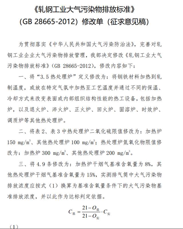 4.《軋鋼工業(yè)大氣污染物排放標(biāo)準(zhǔn)》(GB 28665-2012)修改單(征求意見稿)
