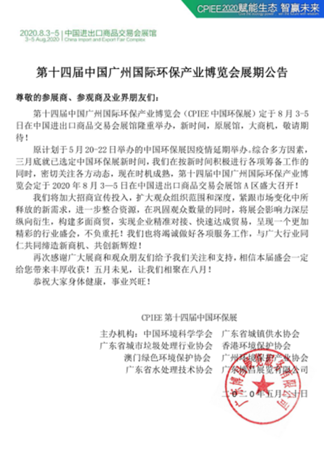 十四年輝煌歷程,CPIEE2020中國環(huán)保展已經(jīng)發(fā)展成為中國乃至亞洲環(huán)境領(lǐng)域較具影響力和號召力品牌盛會之一,是環(huán)保全產(chǎn)業(yè)鏈廣泛交流與合作的重要平臺,環(huán)保行業(yè)發(fā)展的重要載體。本屆展會以“賦能生態(tài),智贏未來”為主題,水、廢氣、固廢、修復(fù)、監(jiān)測等全環(huán)境產(chǎn)業(yè)鏈集中展示,市政、工業(yè)、農(nóng)村終端環(huán)境治理全覆蓋?;浉郯拇鬄硡^(qū)核心指引,城市群萬億市場,未來可期!第十四屆中國環(huán)保展定于2020年8月3日—5日在廣州·中國進(jìn)出口商品交易會展館盛大開展,將獲得全國生態(tài)環(huán)境市場和行業(yè)人士普遍關(guān)注,聚焦中國環(huán)保展!