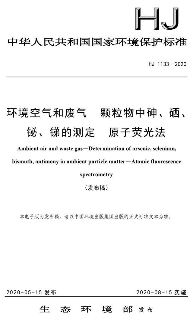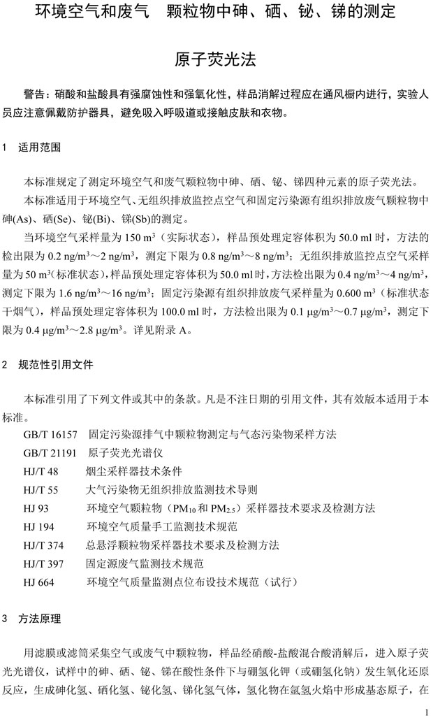 《環(huán)境空氣和廢氣 顆粒物中砷、硒、 鉍、銻的測定 原子熒光法》