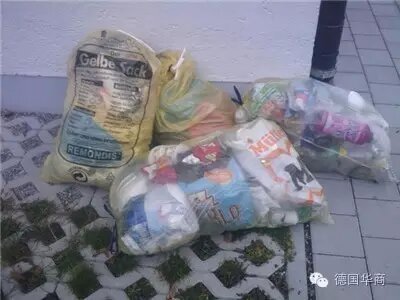 德國人的日常生活中垃圾大致可以分為六類:生物垃圾(Bioabfall oder Biomüller)、廢紙(Altpapier)、包裝袋(Gelber Sack)、有毒廢物(Giftmobil)、廢舊玻璃(Glas)和其他垃圾(Restabfall)。每戶人家至少有黑色垃圾箱(Restabfall雜項垃圾);黃色垃圾箱(Gelbe Sack或者只是黃色塑料袋,可在市鎮(zhèn)指定地點領(lǐng)?。悍胖盟芰掀?、包裝袋、易拉罐、牛奶盒等);棕色垃圾箱(Bioabfall生物垃圾:廚余,包括咖啡濾紙、茶包及花園廢物,樹枝樹葉剪下的野草等);藍(lán)色或綠色垃圾箱:廢紙(Altpapier)。有毒廢物(Giftmobil)、廢舊玻璃(Glas)都是在指定場所丟置,玻璃瓶還要根據(jù)白(就是透明的)、綠、咖啡,丟不同顏色的箱子。