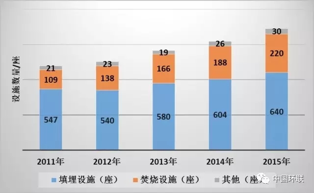 “十二五”期間我國城市生活垃圾無害化處理設施數(shù)量