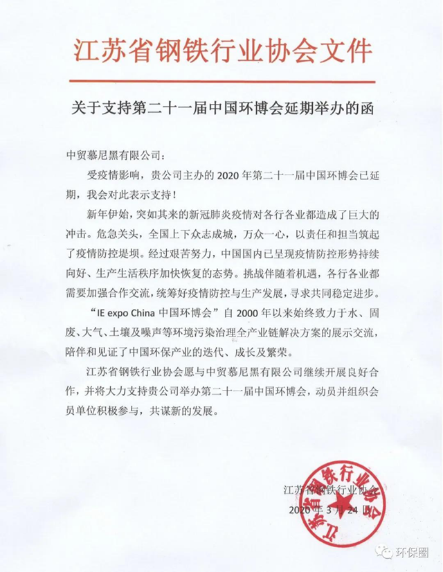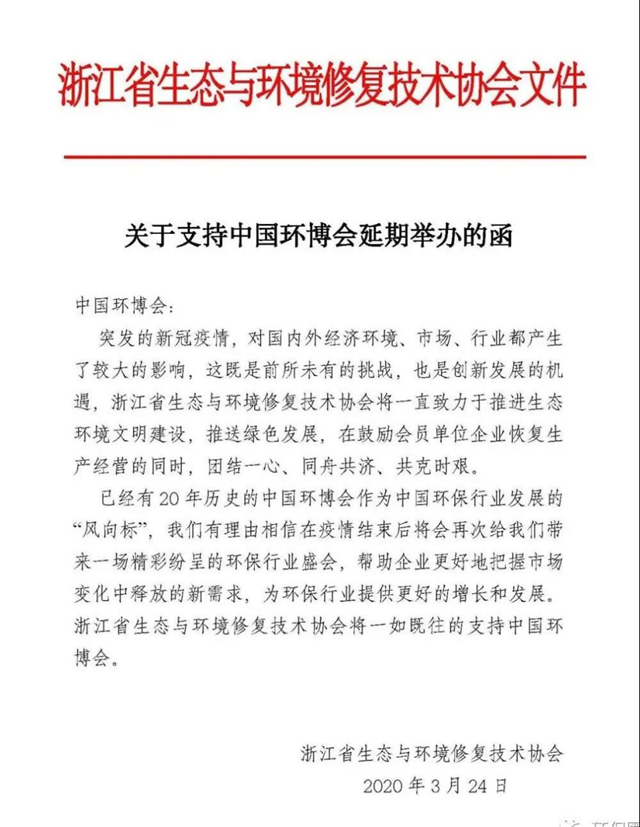 中國環(huán)博會被中國環(huán)保行業(yè)視為行業(yè)發(fā)展“風(fēng)向標(biāo)”,是亞洲一大的環(huán)境技術(shù)展示交流盛會,至今已成功舉辦20屆。在突發(fā)疫情面前,中國環(huán)博會響應(yīng)國家和政府號召,積極配合疫情防控,為保證參展商和觀眾的健康安全,決定延期舉辦,這是履行企業(yè)社會責(zé)任和擔(dān)當(dāng)?shù)呐e措。我會在做好疫情防控的前提下,全力協(xié)助會員單位盡快復(fù)工復(fù)產(chǎn),齊心協(xié)力,共克時艱。我會也將大力支持中國環(huán)博會,關(guān)注新動態(tài),宣傳并組織會員單位積極參與。期待我們在第21屆中國環(huán)博會IE expo China 2020見面!