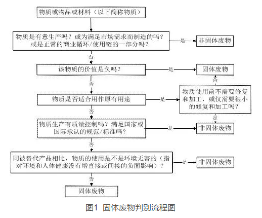 導則第三部分列出了“固體廢物與非固體廢物判別流程圖”(見圖1),該“流程圖”有5層判斷項,其中有4個判斷項可以得出“非固體廢物”的屬性。其中在第2項判斷為“有價值”的基礎上的后續(xù)3個判斷,可以看做對于廣義價值的選擇和控制。即“基本保留原有用途的價值+符合相關(guān)產(chǎn)品標準+可直接用作替代產(chǎn)品,且使用過程環(huán)境無害”。
