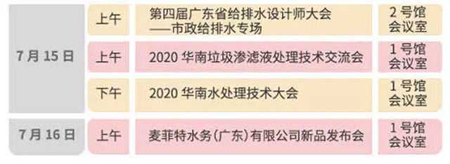 當(dāng)然,除以上會議以外,7月15日的2020華南垃圾滲濾液處理技術(shù)交流會、2020華南水處理技術(shù)大會、第四屆廣東省給排水設(shè)計師大會—市政給排水專場也期待大家的光臨。