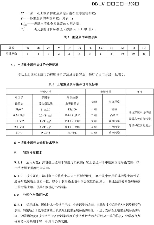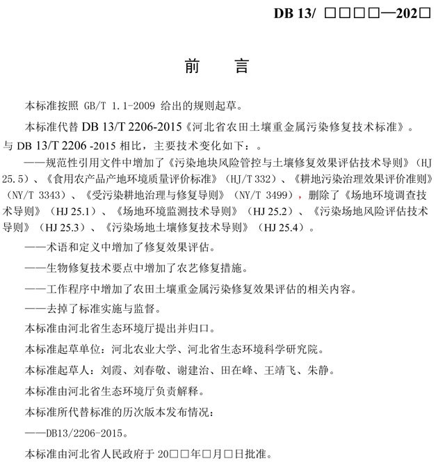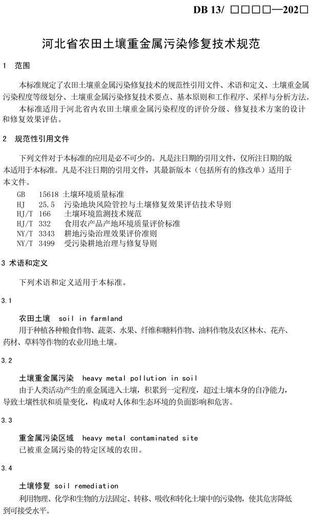 原標(biāo)題:河北省農(nóng)田土壤重金屬污染修復(fù)技術(shù)規(guī)范(征求意見稿)